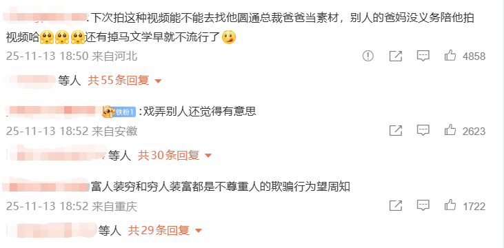 是“富人假装穷人去戏弄穷人,再靠这个拍视频给穷人看去赚穷人的钱”。
