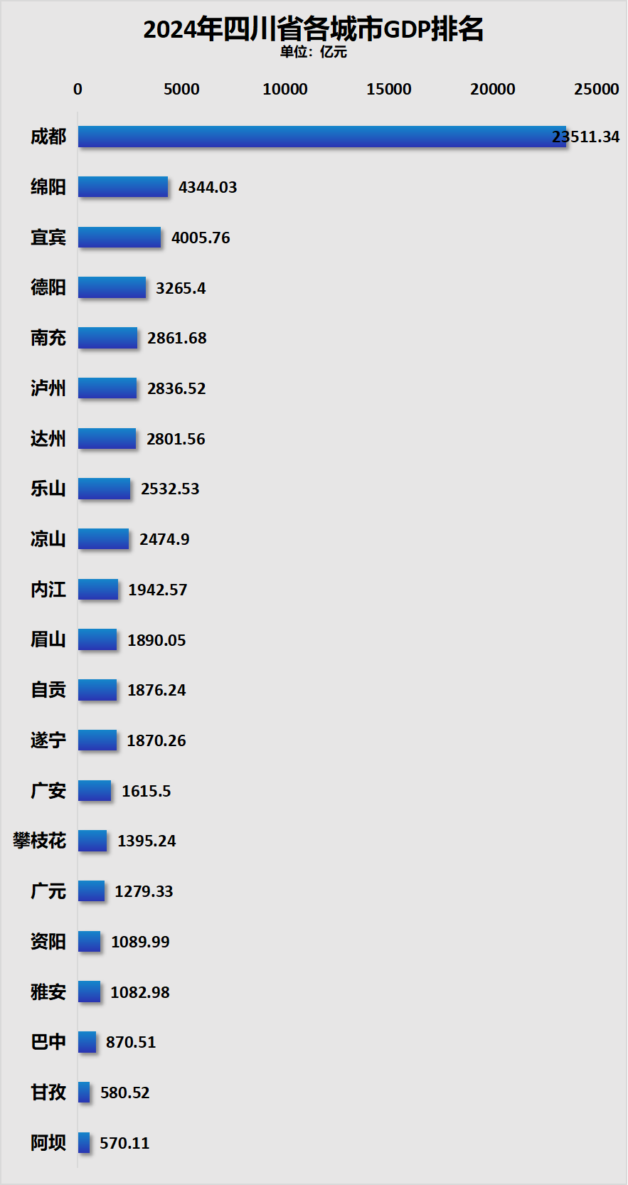 社会学中有一个词叫“马太效应”,它描述了一种常见的社会心理现象,即优势往往会产生更多的优势。无论是地区之间,还是省内各城市间,乃至城市内部,都在围绕着“强者恒强”的法则在运转。其中海南省倒数第一城选择了三亚,实际是三沙。不过三沙市设立的重点是政治与军事,不便拿来作经济比较。四川经济第一城成都2024年GDP高达23511.34亿元,同期的倒数第一城阿坝州只有570.11亿元,成都是阿坝的41.2倍。四川的极度不平衡,是强省会战略决定的。而强省会战略则是地理格局决定的。四川位于我国大陆地势三大阶梯中的第一级和第二级,即处于第一级青藏高原和第二级长江中下游平原的过渡带,高低悬殊,西高东低的特点特别明显。西部为高原、山地,海拔多在3000米以上。能够提供给四川发展的,就是四川盆地,也即成都平原这一带。地理形势叠加抵御沿海虹吸,推着四川往强省会路上狂奔。9月24日四川省政府发布《关于支持成都做优做强极核功能加快高质量发展的意见》,明确提出:将支持成都持续做大经济总量、做强核心竞争力、做优功能品质,打造超大城市高质量发展和高水平治理新标杆。
