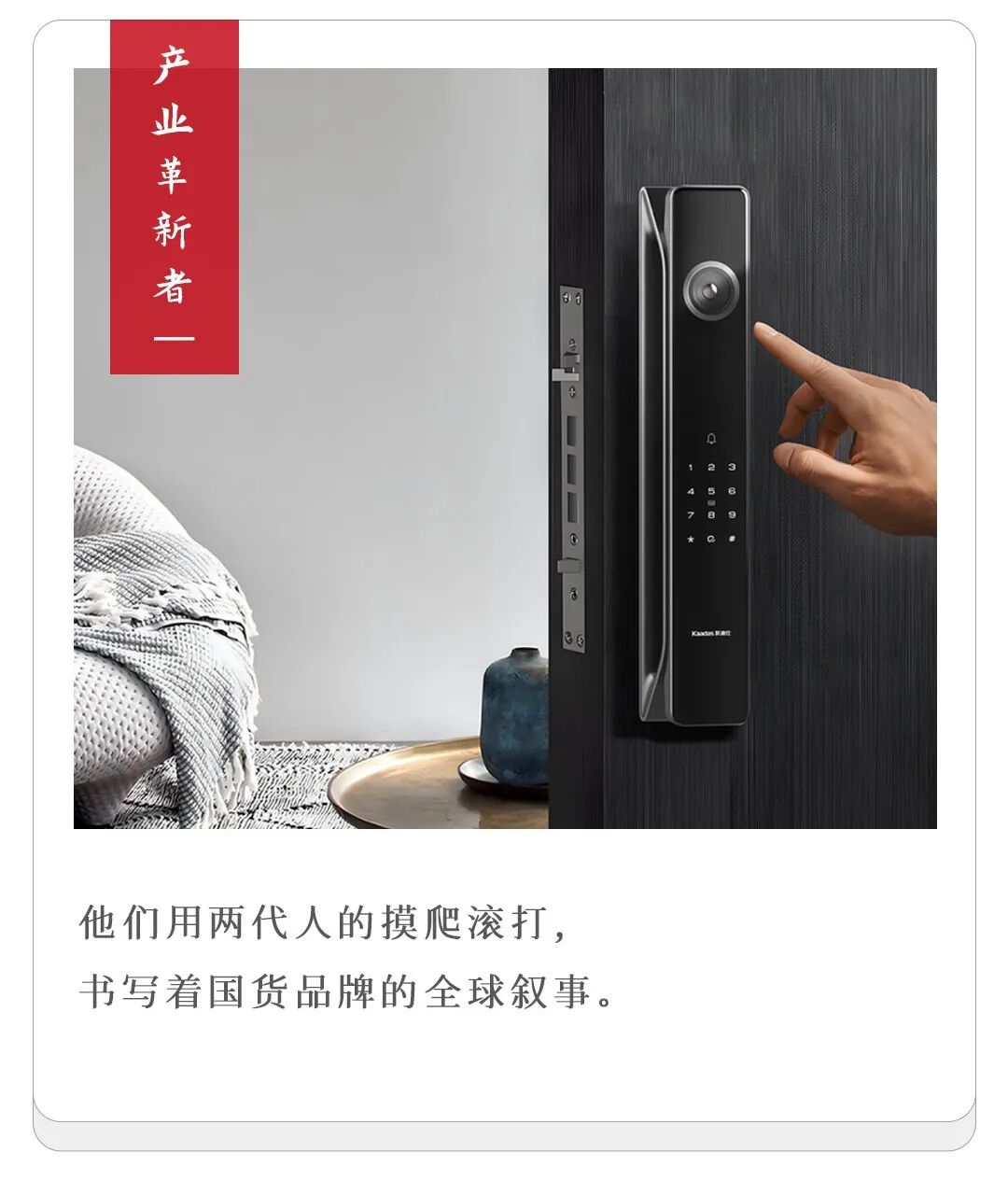 2005年,德国的一家锁具店里,一位中国商人对着一把智能门锁,足足端详了半个小时。此刻他意识到,眼前这个价格不菲的新玩意,将会彻底颠覆他熟悉的行业,甚至改变未来千家万户的进门方式。从那一刻起,一条从温州小厂通向全球的路,开始在他的脚下延伸。如今,20年后的今天,苏志勇造出的智能锁已销往全球36个国家和地区,累计销量突破1000万台,在高端智能锁领域全球销量第一!凯迪仕的背后,是苏志勇和他的儿子苏祺云两代人跨越几十年的漫长接力。他们用一把小小的智能锁,讲述了国货出海最硬核的故事。2018年前后,一场硝烟弥漫的“千锁大战”,将智能锁行业的腥风血雨推到了公众面前。那个时候,全国智能锁品牌足有3500多家,各大公司纷纷涌入,都想在这一新兴市场分一杯羹。● 相较于日韩,中国的智能锁占有率很低。图片来源:凯迪仕官网有人分门别类,将这些公司分成5大派,颇有一股“华山论剑”的架势:第一类是老牌传统锁企,如凯迪仕、德施曼等;第二类是拥有雄厚资金和技术能力的互联网企业,如小米、华为、360等;第三类是安防企业,如海康威视、大华股份;第四类是家电巨头,包括海尔、美的、创维等;第五类则是智能家居创企,以鹿客、果加等为代表。在各大企业的发力下,市面上的智能锁具新品层出不穷。从密码输入到指纹识别,再到掌纹识别、静脉识别、虹膜识别等,搭配上高清大屏、超清录像等功能,挑得人眼花缭乱。由于许多企业自身并不具备研发制造能力,采取贴牌生产,导致市面上产品同质化严重、质量水平参差不齐,甚至暴露出极大的安全隐患。经过几年的大浪淘沙,到2022年下半年,大部分玩家都已黯然退场。市面上的在售品牌数量仅剩300家左右,而能收获融资的更是屈指可数,只余寥寥几个头部品牌。作为一家老牌锁企,凯迪仕在这场战役中存活下来,并逐渐跻身中国乃至全球智能锁行业的前列。“能存活下来主要靠产品、技术和供应链,这是品牌的核心优势。”苏祺云如此说道。凯迪仕创始人苏志勇是苏祺云的父亲,早在上世纪80年代,苏志勇便进入锁具行业。那个年代家家户户用的都是机械锁,苏志勇专注于机械锁的制造和销售,一干就是20年,逐步把企业做到了上亿规模。2005年,决定开拓海外市场的苏志勇前往德国考察,在一家门店内,他发现了一款精致但售价不菲的智能门锁。凭借多年锻炼出的行业嗅觉,苏志勇断定这将是一种颠覆性的产品。传统机械锁的许多痛点,都能在智能锁身上得到很好的解决。比如出门忘带钥匙,或者钥匙丢了,再也不用费劲巴力地去找开锁师傅,一串密码就能开门;半夜回家晚了,怕敲门吵醒熟睡中的家人,轻按指纹识别也能开门;还有双手大包小包拎满东西的时候,只需要把脸部往门前一凑,门随之打开,完全避免了放下东西翻找钥匙的焦躁……于是从德国归来后,苏志勇便在制造传统机械锁的同时,开始了智能锁的设计研发。2009年,苏志勇正式成立凯迪仕品牌,推出了自己的智能锁产品。然而在那个年代,智能锁在国内是个很新鲜的东西,市场认知度不高。如何让产品被消费者接受,成了摆在苏志勇面前的一个大难题。为了拓展销路,苏志勇前往深圳,组建专门的研发和销售团队,为凯迪仕铺建线下渠道,后来干脆将总部搬到了深圳。2014年后,随着国内城镇化进程的加快和智能家居的兴起,智能门锁逐渐闯入大众视野,吸引了不少消费者尝鲜体验。凯迪仕作为最早的一批锁企,迎来了自身发展的风口,产品销量一路大涨。也是在这一时期,苏祺云从加拿大阿尔伯塔大学毕业,回国进入父亲的工厂工作。值得一提的是,阿尔伯塔大学是加拿大最顶级的学府之一,诞生过第16任加拿大总理和多位诺贝尔奖得主,同时也是世界百强大学之一。为了熟悉公司一线业务,苏祺云用将近3年的时间,把公司几乎所有的关键岗位都做了一遍。他在车间打过模具,在销售部跑过业务,在品牌部写过文案,在产品部学过画图和设计,还在海外部拓展市场。从生产到技术、从品牌到市场,这位“厂二代”一点点淡去自己的名校海归光环,在厂里逐渐扎下根来。他说:“我会记住零部件的成本,包括一颗螺丝钉多少钱、制造费组装费多少钱等,来了解生产环节的各个工艺。”2019年,苏祺云接棒父亲出任公司董事长,此时国内“千锁大战”激斗正酣。面对雨后春笋般涌现的大大小小的智能锁企业,苏祺云进行了两项关键性的举措,帮助凯迪仕坐稳战局:一是推出千元级的智能锁K7,性价比直接拉满,提升公司产品的核心竞争力;二是邀请明星代言,在央视、机场、高铁站等高流量场景中大规模投放广告,提升品牌知名度和渠道渗透率。核心产品+有效宣传,让凯迪仕从复杂残酷的行业竞争中脱颖而出,一路高歌猛进。公司同时获得资本市场关注,2021年完成高达近1亿美元B轮融资,刷新行业单轮融资最高纪录;2022年又完成6亿元C轮融资。在巨额资金的加持下,苏祺云带领凯迪仕,展开了轰轰烈烈的全球化进程。他非常坚定地表示:“凯迪仕是一定要做全球化的,科技型企业是有一口气想要为国家争光的,所以我们要么就不做,要么就是要做世界第一。”出人意料的是,苏祺云出海的第一站就选择了美国市场。在业内看来,美国市场标准严苛、体系复杂,以此作为全球化战略的切入点,是一件相当冒险的事情。他前期找到美国本土品牌,给它们做代工,积累对当地产品