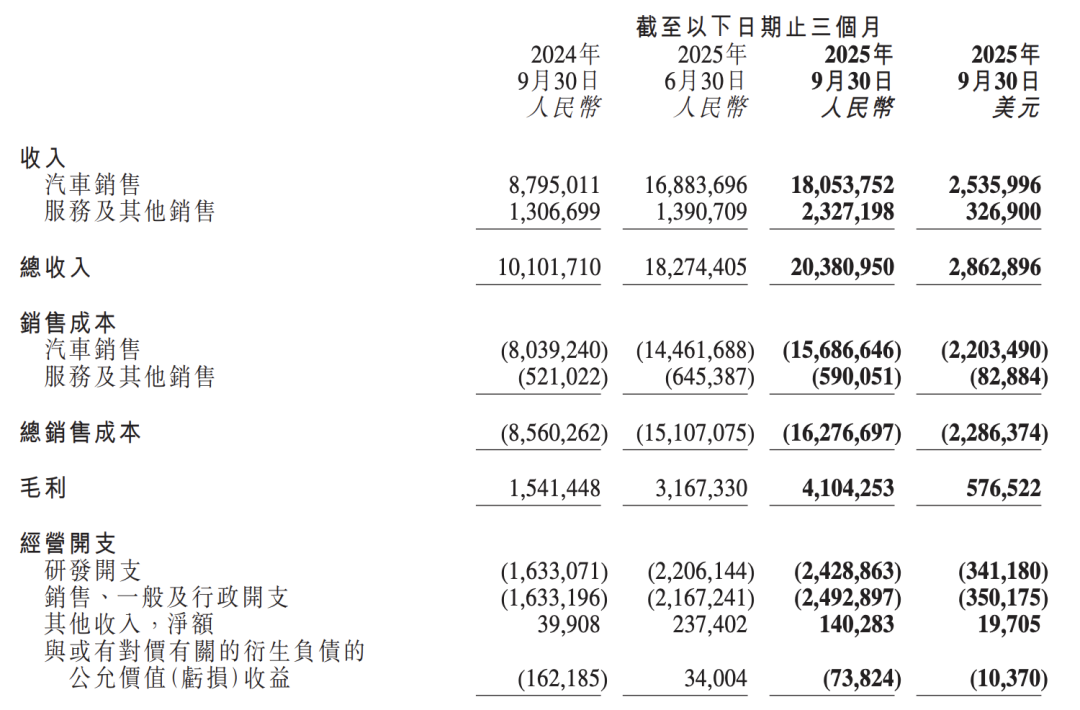 财报显示,小鹏汽车第三季度营收为203.8亿元,同比增长101.8%,市场预估204.5亿元;净亏损为3.8亿元,同比大幅减亏。