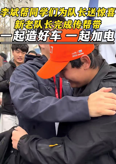 一幕是,太原理工大学车队的老队长,今年考上了985高校山东大学研究生,“转会”到了山大车队。太原理工的新任队长,特地给老队长准备了一件队服当退役纪念礼物。队服上铺满了队内成员以及其他车队的签名和祝福,连蔚来CEO李斌也在衣服上签下“一起造好车”。老队长收到礼物非常激动,哽咽落泪。