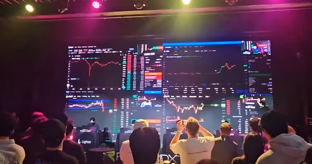 而这个 Perp-DEX Day 做的事,就是把这种链上的高杠杆交易直接搬到线下,办成一场有观众的现场合约炒币大赛。