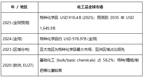 特种化学品作为一个增长较快的细分市场,涵盖了工程树脂、功能材料、添加剂、涂料和粘合剂等。这一领域产品具有较高的附加值,且对环保和可持续性的要求越来越高。根据Markets and Markets 的报告,特种化学品的市场规模预计将在未来几年以 5% 到 7% 的年均增长率扩展,2025年市场规模将达到 约 1.6 万亿美元