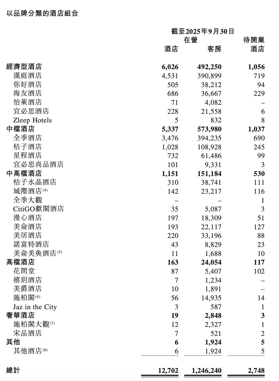 三季度,华住中国新开业酒店数为749家,截至该季度末,华住中国在营酒店总数为12580家,在营客房总数约122万间,待开业酒店数量为2727家。此外,在中高端酒店领域,截至三季度末,华住在营及待开业的门店数量超1600家。