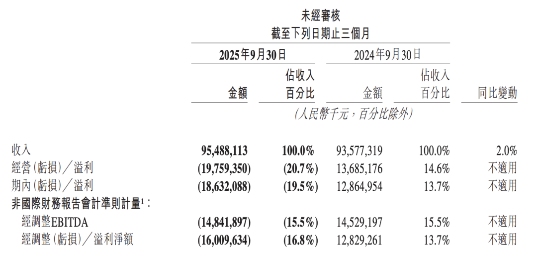 11月28日,美团披露了2025年第三季度业绩报告,财报显示,第三季度美团实现营收955亿元,同比增长2%,低于彭博预期增长的4%。经调整净亏损为160.1亿元,高于彭博一致性预期的138亿。
