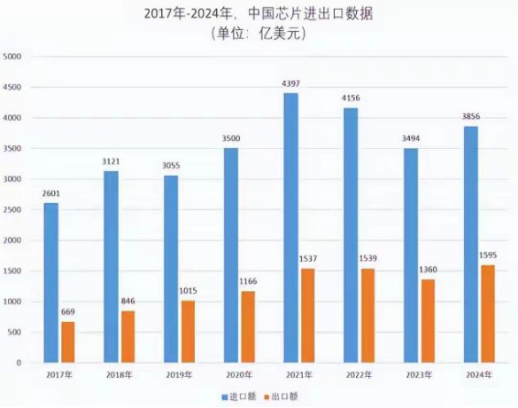 都知道芯片是汽车、计算机、手机以及大多数工业品的控制大脑,我国又是全球第一制造业大国和工业大国,以至于很多人并不知道芯片进口数量超过了石油。以2024年为例,芯片进口为3800多亿美元,而原油进口为3200多亿美元。