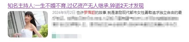 20年8月,台湾著名女星罗霈颖被发现在家中身亡,去世两天后才被发现。