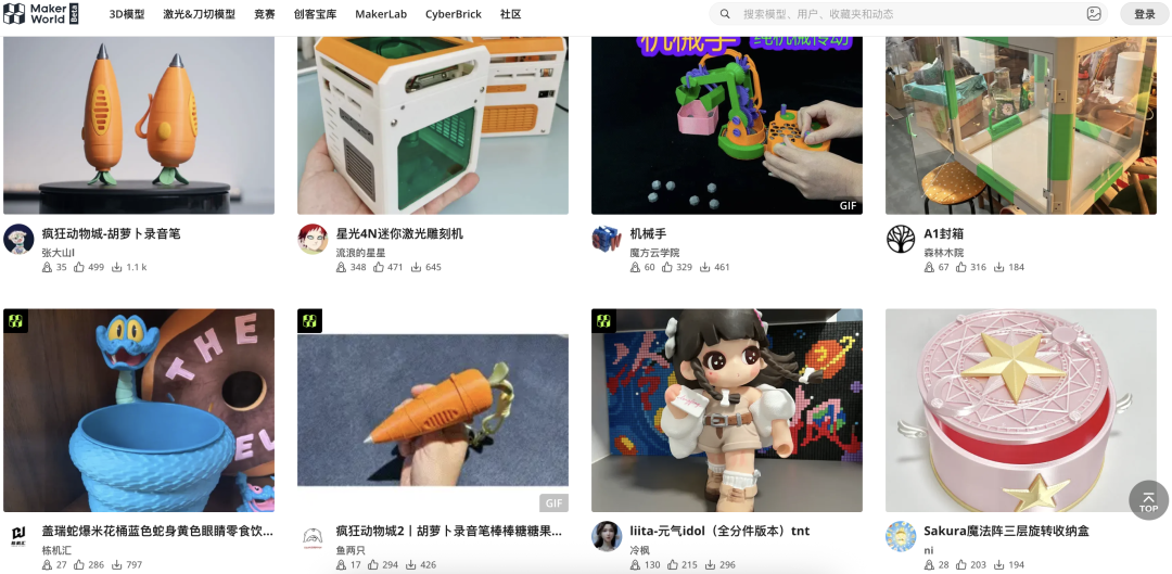 凭借出走大疆的技术班底和对产品的颠覆式创新,拓竹从起步阶段就是同行望尘莫及的。但真正引爆全民3D打印的,其实并不是硬件,而是软件——拓竹构建了一个自己的创客乐园MakerWorld。