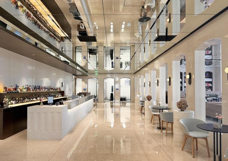 此外,MFG的办公区墙面特别选用高标准的吸音墙板,共同维护静谧专注的办公环境。室内布局上,项目团队经过人流模拟与功能需求分析,专门设立独立洽谈室,保障商务沟通的私密性,防止外部干扰,显著提升办公人员的专注度与任务处理效率。