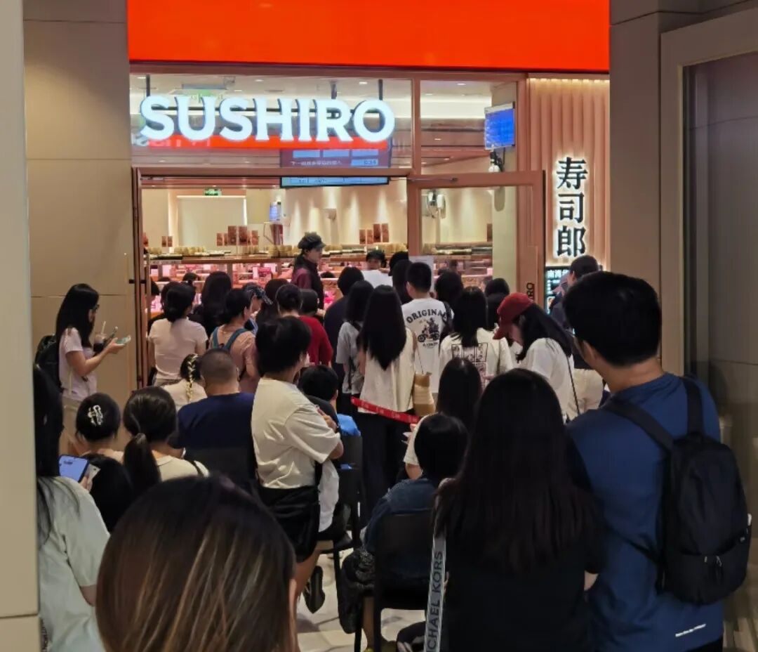 在北京,寿司郎西单店创下排队2000桌的纪录,有消费者甚至坐高铁从天津到北京只为“错峰”就餐。