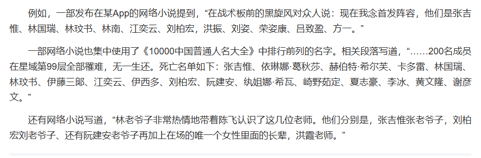 网络小说跟正式文件,居然用着同样的名单,这何尝不是一种黑色幽默呢?