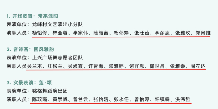 2024年的全国夏季“村晚”龙峰示范展示活动,演职人员名单,直接复制了百度文库里的另一个合集,《一万个名字》。