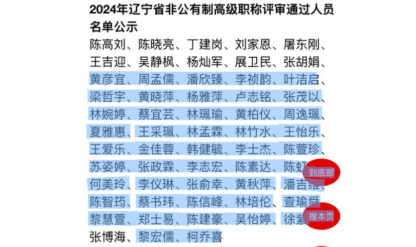 在广州通用职业技术学校官网在2023年发布的高考喜报中,110名优秀考生,竟然十几都是跟《人名大全》一致,连排列顺序也相同,只是在中间插了一些真名。营口市科技企业知识转化平台,2024年9月30日公布的一份《公有制工程系列中级职称评审通过人员名单公示》,95个名字,38个来自《人名大全》,顺序都不改。辽宁省科技企业知识转化平台,去年发的《非公有制高级职称评审通过人员名单公示》,总共才58个名字,竟然有48个都是从《人名大全》里面抄的。