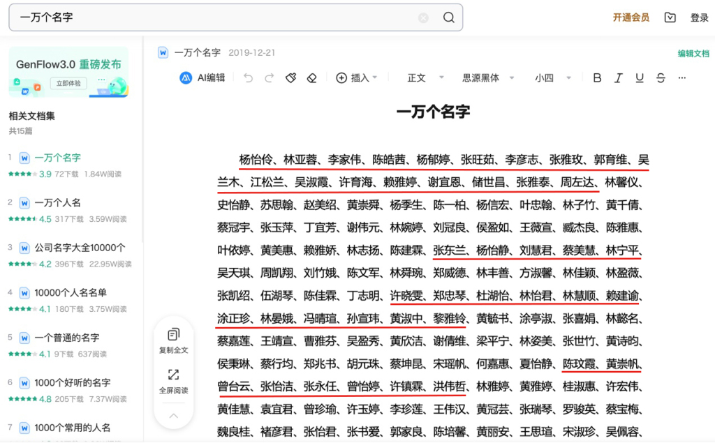 仔细一回忆,张吉惟、林国瑞、林玟书、林雅南、江奕云这五个所谓的专家,似乎来自百度文库《10000中国普通人名大全》的前五个名字,甚至连排列顺序,都跟文档里面完全一致,出现这种巧合的概率,无限趋近于0,那么唯一的合理解释就是,公告里面的专家是随便瞎编的。