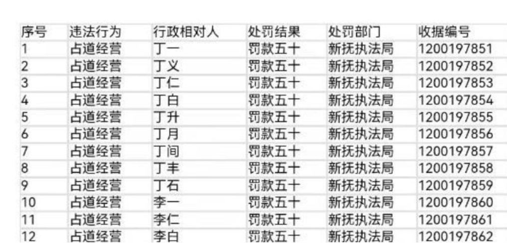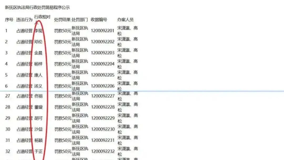 在辽宁省抚顺市的行政处罚名单里,以张吉惟为首的五人组,变成了被处罚的小摊贩,2022年他们因为违规占道经营,每人被罚了50元,然后上了公示。