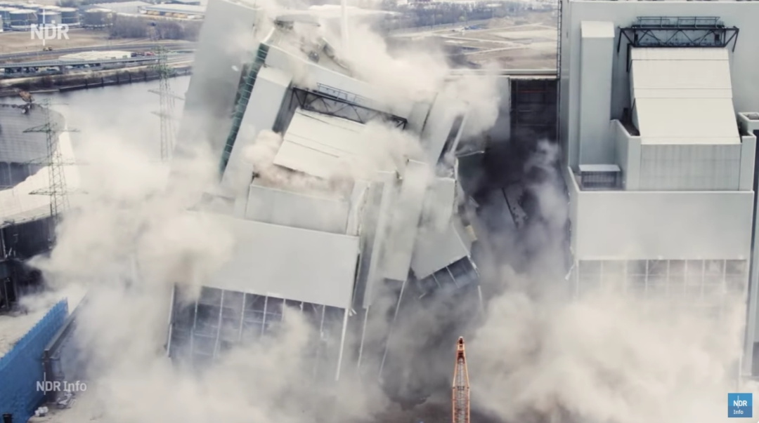 炸毁墨尔堡发电厂现场 图源:北德广播电视台(NDR)视频截图