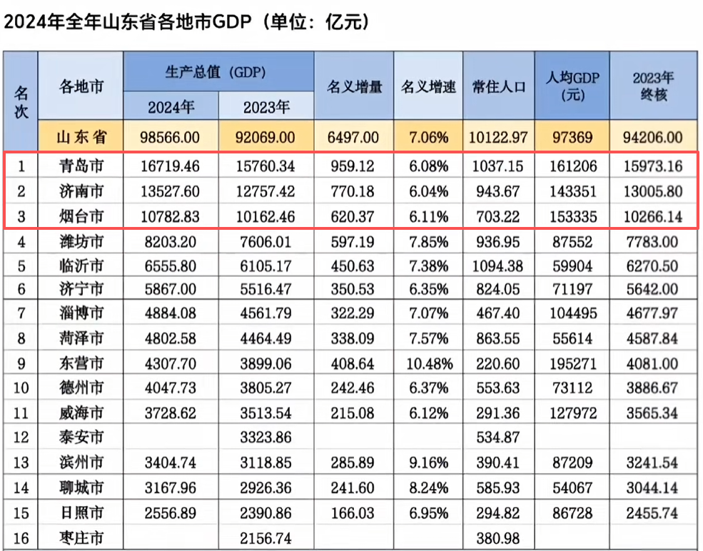 但广东、江苏、山东,都属于双龙头拉动。像广东,有广州、深圳,江苏有南京、苏州,山东也有济南、青岛。在万亿级城市中,山东有三个,除了济南、青岛,还有烟台。