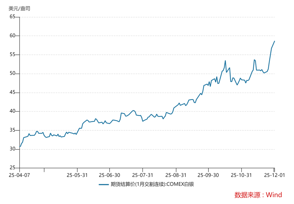 从全球数据来看,伦敦、纽约、上海等主要市场的库存均处在多年低位。Wind数据显示,11月28日,上海金交易所白银库存为687.195吨,跌至近10年以来最低水平;COMEX白银库存已经从9月底的高位1.654万吨降至上周三的1.42万吨,降幅约16.5%。