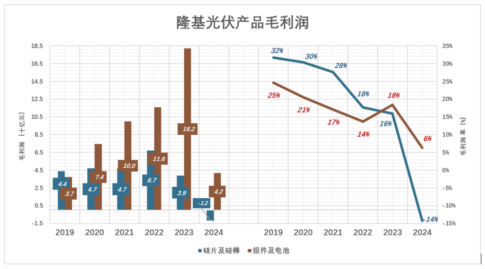 2024年,硅片业务毛亏损34.2亿、毛亏损率达20.5%;
