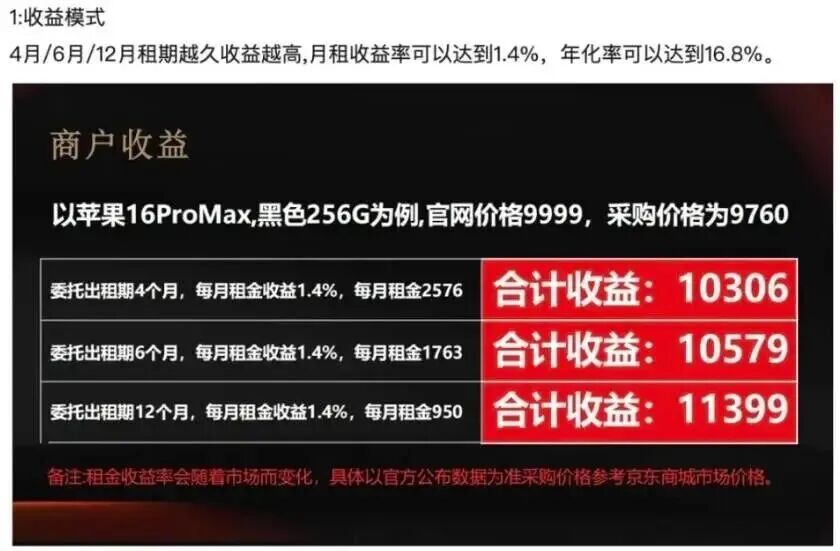在青云租平台上租一部iPhone,日均成本不过一杯奶茶钱。这看似平淡的小生意,“青云租”却把它包装成了年化16.8%的造富神话。