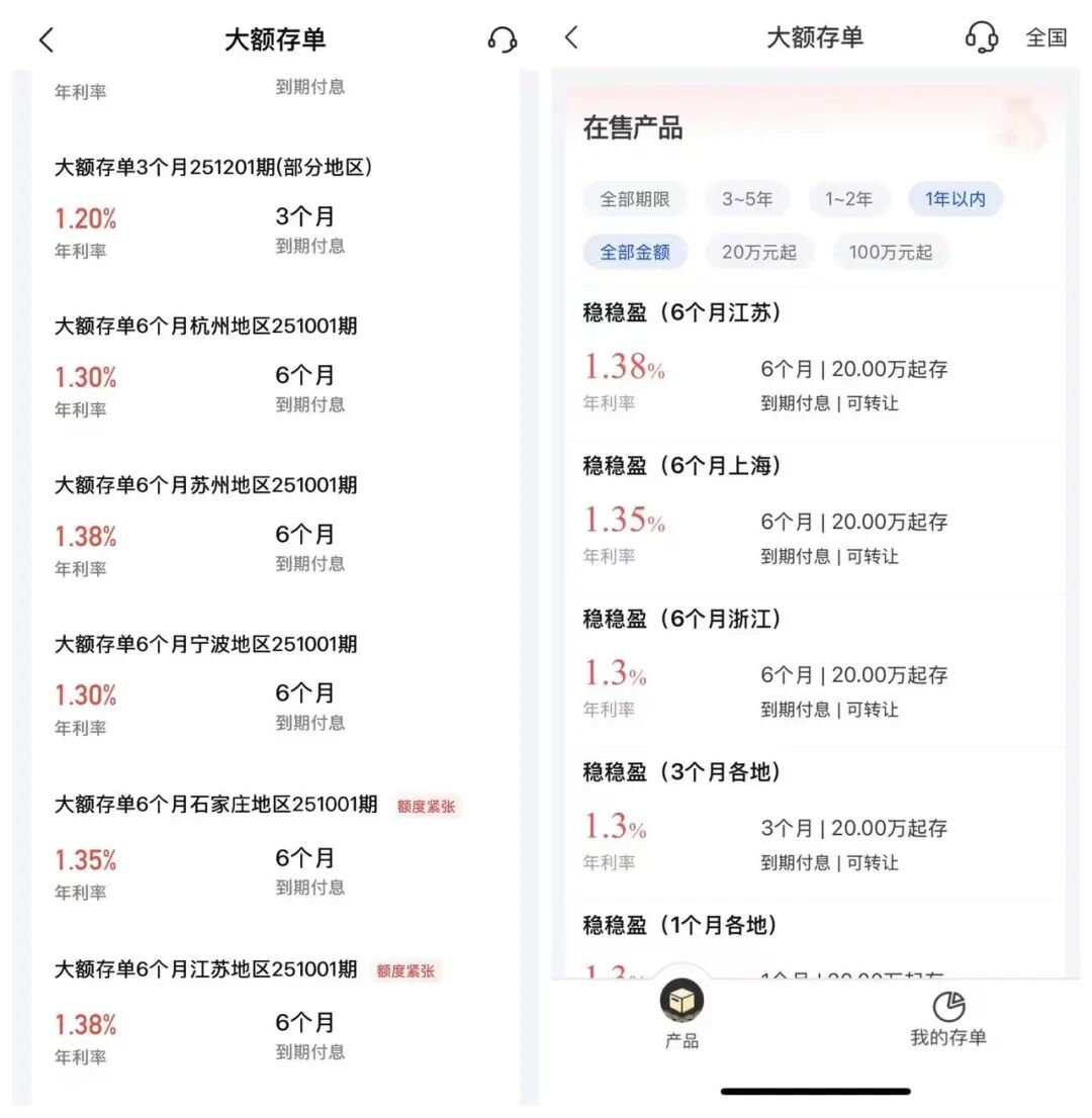 最“利索”的当数交通银行和邮储银行,两家银行App的大额存单货架直接变空,只有一些可转让的大额存单产品可供挑选。