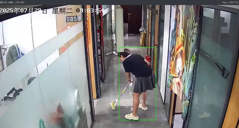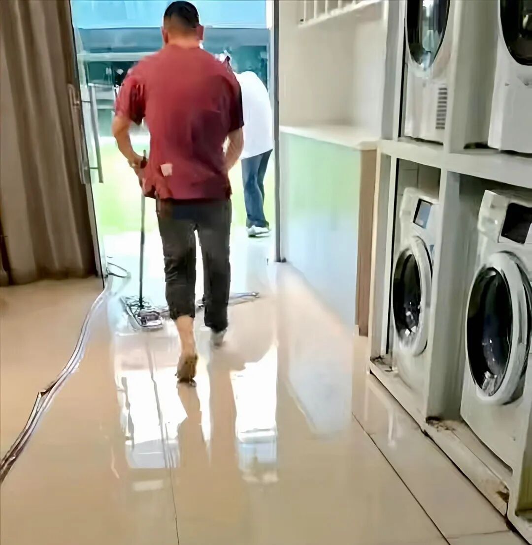 监控画面里,她手持拖把,脚步匆匆却丝毫不见慌乱。到达被淹区域后,她先轻声安抚焦虑的客户,用温和的话语缓解对方的情绪。而后迅速投入到清理工作中:弯腰拖水时,她专注于每一处积水,哪怕是角落缝隙里的水渍也绝不放过;换水拧拖把的间隙,还会频频回头查看客户的状态,继续用暖心的话语给予安慰。