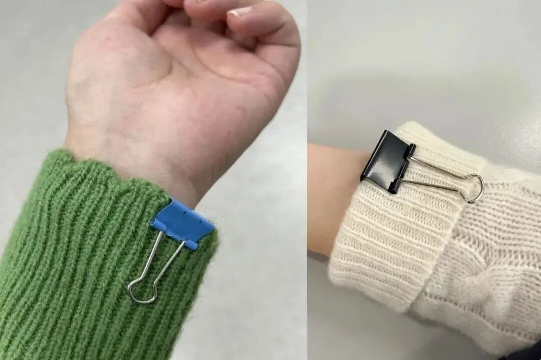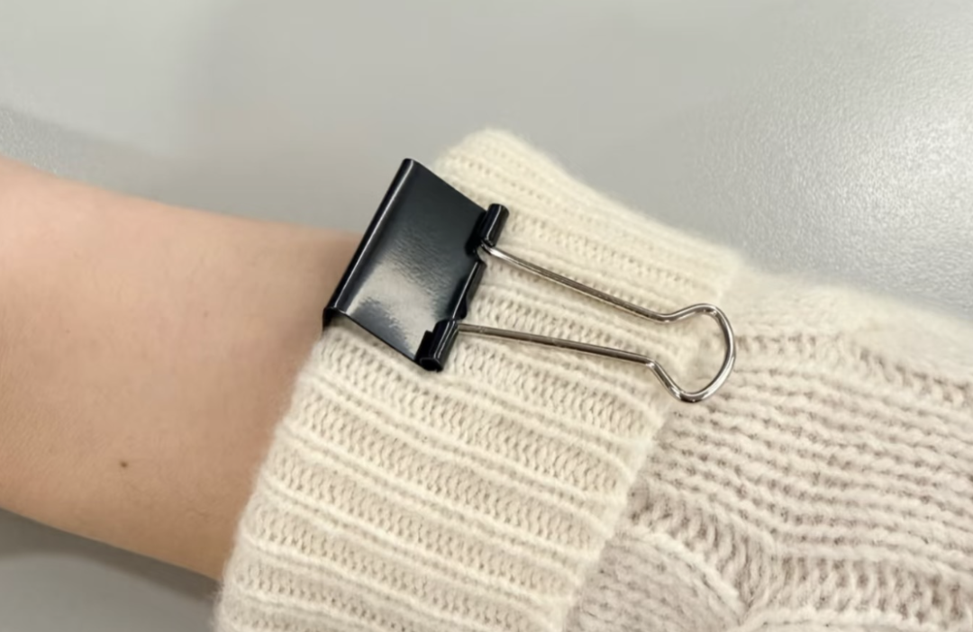 有人则用金属夹住毛衣边角的方式完成放电。