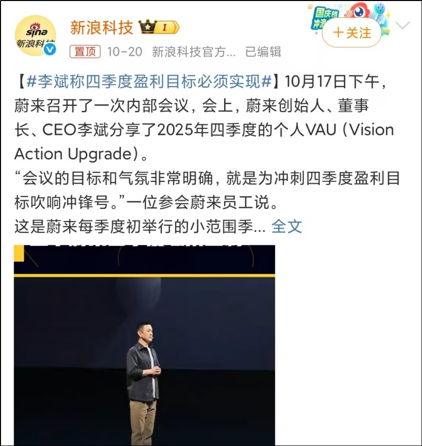 蔚来这样的亏损大户压力更大。李斌今年说过,很多人不选蔚来,是担心蔚来会倒。所以他立下flag:“今年第四季度必须盈利。”