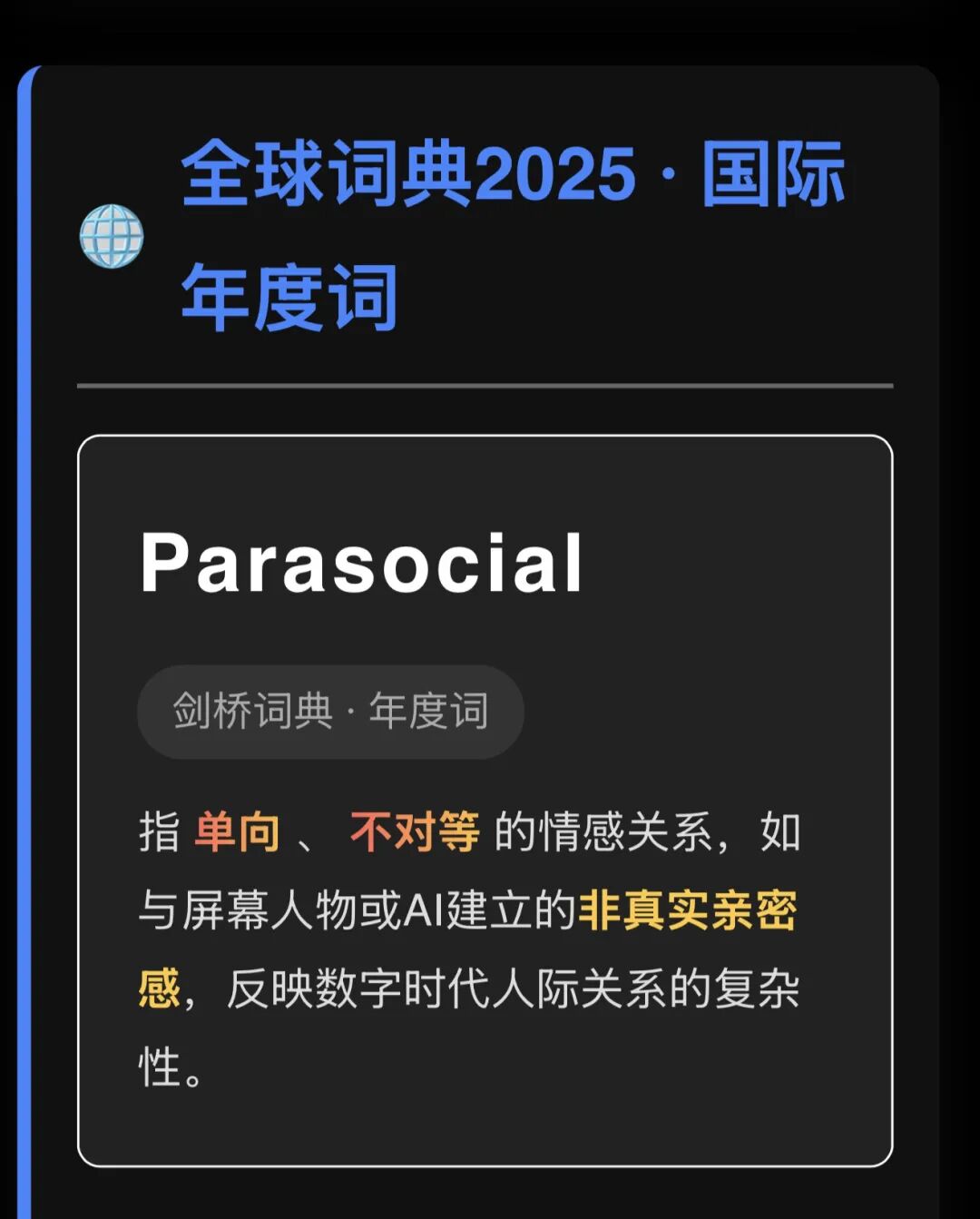 2025年的年度词汇评选,恰恰完成了这样一次命名工作——为人类在智能时代的迷惘、依赖、愤怒与效率崇拜,标注出清晰的语言坐标。