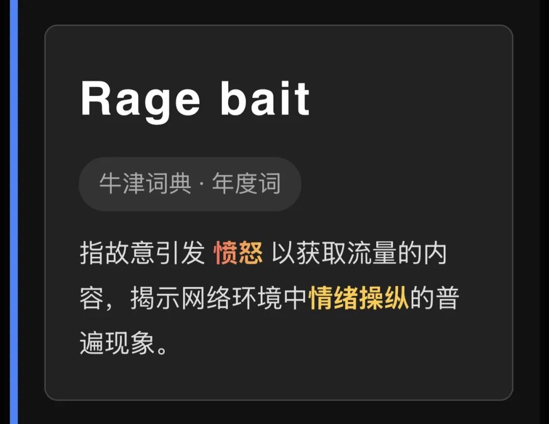 如果说准社交解决的是“情感空缺”,那么 Rage bait 则直接作用于情绪的另一端——愤怒。