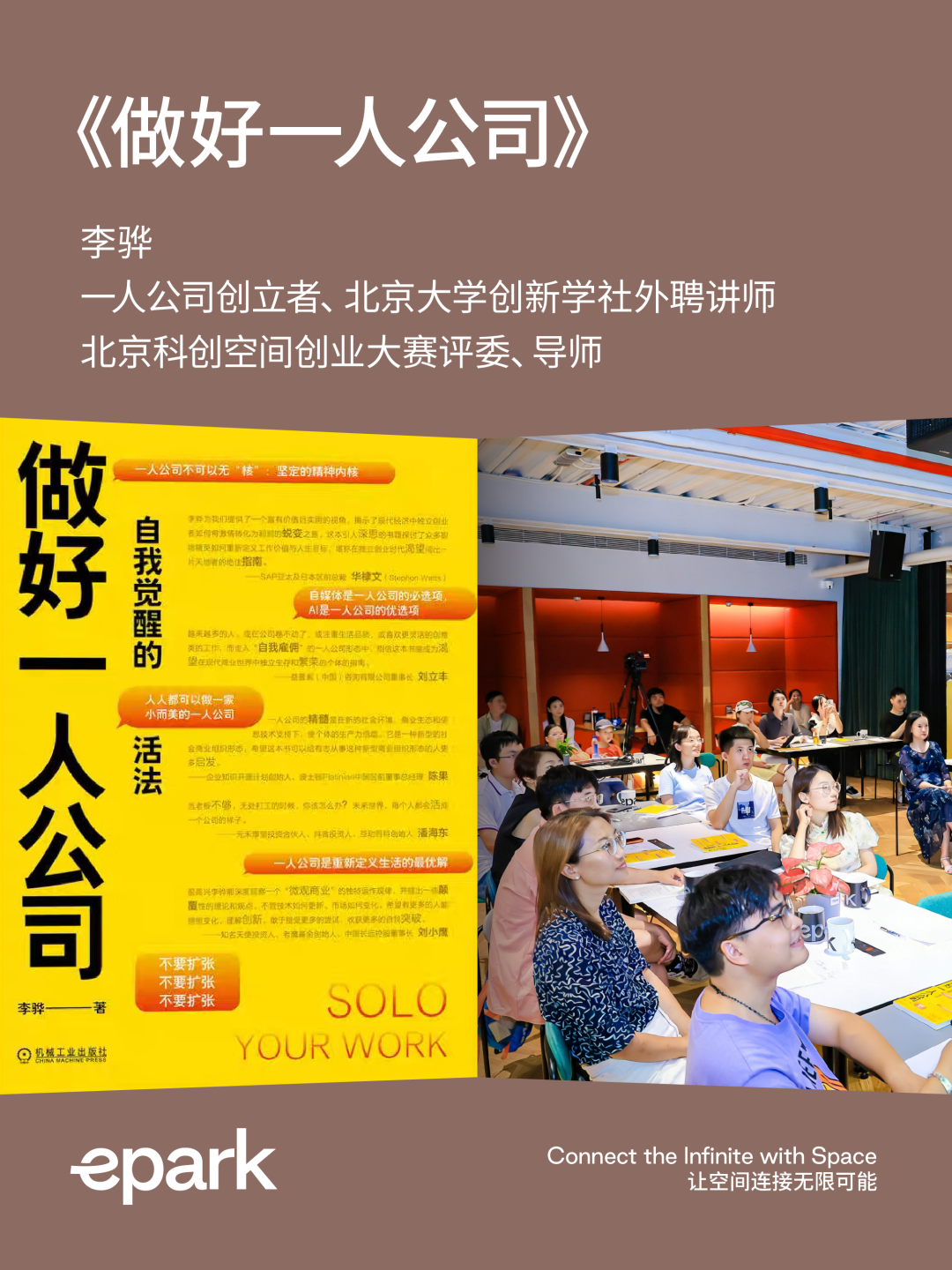 过去的一年,我们邀请了16位作者来到epark领读,把好内容带到大家面前,让每一次相聚都能带走真正有用的洞察与连接。真正有力量的社区不是聚集了多少人,而是能把分散的好奇心转化为持续的创造力与价值共生。今天,把部分内容整理出来,既是对2025年的总结,也寄希望在2026年:连接更多有创造力的epark-er与我们共同向上生长。作者张鹂,中国传媒大学副教授、央广签约评论员、《AI苏醒》作者。张教授在讲座中围绕“AI是否会产生自我意识”做了系统性梳理。她以科幻影像、若干思想实验与现有科学证据为依据,阐明智能涌现的可能路径,提出了构成自我意识的三项必要条件及其内在悖论。并通过忒修斯之船等案例讨论个体连续性,区分生命体与非生命体的界限。对职场个体而言,与其纠结“AI是否有自我”,更应关注把技术转化为可控的生产力,保留自身判断、提升协作、实现共享价值。作者刘翔平教授,北京师范大学心理学院教授、博士生导师、临床与咨询心理学研究所所长。他在本书中提出“内核稳定”需建立自尊与他尊两大基石,解析二者的来源与互动。书中直指现代人常见的情绪脆弱:易怒、犹豫、自我怀疑、对他人评价过于敏感。提出走出低自尊的自我修复路径与处理低他尊人际关系的策略。本书可帮助职场个体把自我成长放在关系网络中审视,在绩效压力、人际冲突和上级反馈中建立更健康的他人信任感。作者冰洋,工信部AI智能体高级工程师、原华为/中兴/腾讯一线项目经理。他擅长将理论与案例结合,强调抓小场景解决痛点、用低成本MVP快速验证、通过内容与渠道放大变现。书中提出普通人也能做AI项目的理念:AI不只是技术人专属,靠工具+领域知识就能构建有偿服务或产品。把抽象方法落成可操作步骤:拆解需求、选取现成模型、设计付费闭环、长期迭代机制。这本书为对管理者、销售提供了从识别痛点、构建MVP到放大影响的可复制参考路径。作者李骅,拥有25年跨界从业与七年一人公司实操、北京大学创新社外聘讲师、北京科创空间创业大赛评委,兼具战略高度与落地经验,既有说服力也便于复制。全书以“认知觉醒—方法论—行动手册—参考案例”四部分架构,强调以强兴趣为驱动,找到个人的“北极星”,并用工具化、迭代化的方法把能力产品化、可交付化。本书对创业者而言,提供了用头脑当团队的轻量化蓝图,具有现实意义与长期成长价值。作者许顺东,北京电视台生活频道节目总监、阿里巴巴·大文娱高级制作人/高级内容评估专家。他以媒体与企业实操的丰富经验,将人生规划做成可执行的方法论。