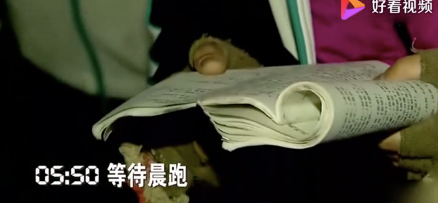 在淡青色的晨曦中拿着书等待晨跑,在熄灯后打着手电继续学。