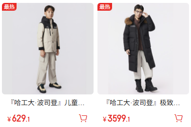 在前述火热的高校羽绒服市场上,实际大部分院校的羽绒服代工也出自波司登之手。例如中戏、哈工大的部分官方周边。除实际增收外,品牌同样收获高校质量背书,又在迎合高端受众之外,顺势融入更多大众消费群体。