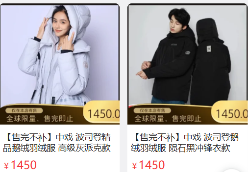 在“书记带货”的宣传下,其官方购买渠道人大红创小程序一度因访问量过大无法打开,目前部分款式已售罄;相关的#人大899元书记严选羽绒服卖断货#话题一度登上微博热搜,阅读量突破两千万,讨论互动量也过万。