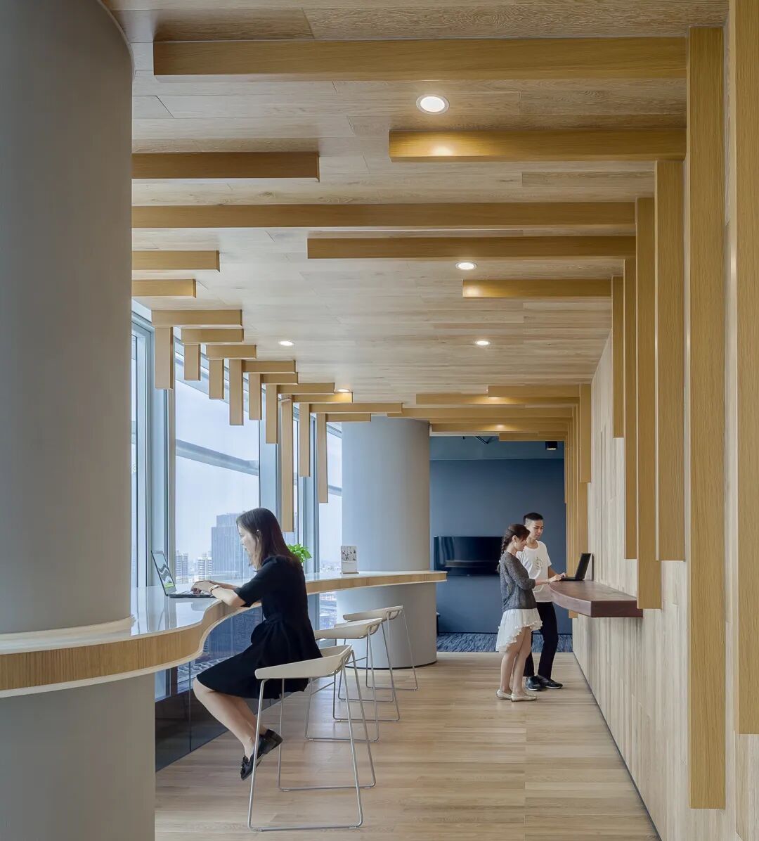 木门、木饰面、天花板等,挑选具备国际环保认证的品牌,最大程度减少甲醛等有毒挥发物的散发量,守护办公空间的空气质量。