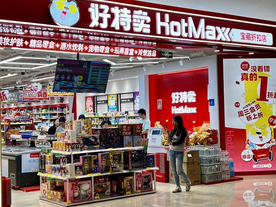 近期在好特卖等折扣零食连锁品牌门店的“黄金C位”,众多知名潮玩IP,如奥特曼、哪吒、皮卡丘等,以低至5折、甚至两三折的价格,被摆在门店最中央的位置,成为折扣超市招揽人气的核心产品。