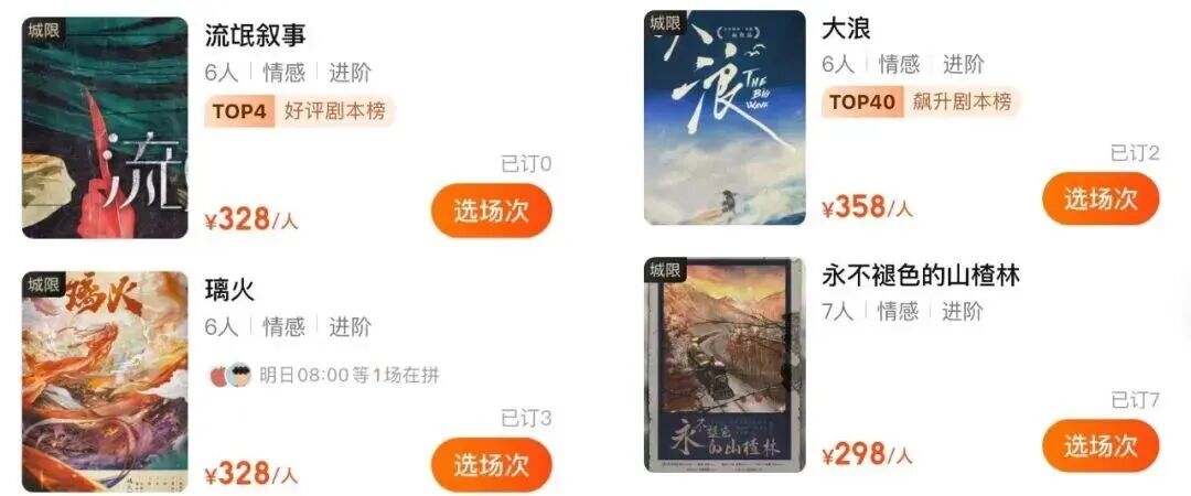 随着形式和内容不断创新,价格也水涨船高。普通盒装本的单价大约在百元左右,硬核本多在两三百元,而有恋陪参与的大型情感本,价格普遍在三百到六百元之间。“因为店家付出的成本更高了”,南希解释,一场普通硬核本只需要一名主持人,而大型情感本往往需要三名以上DM,还要配合串场演员,整体人力成本成倍增加。