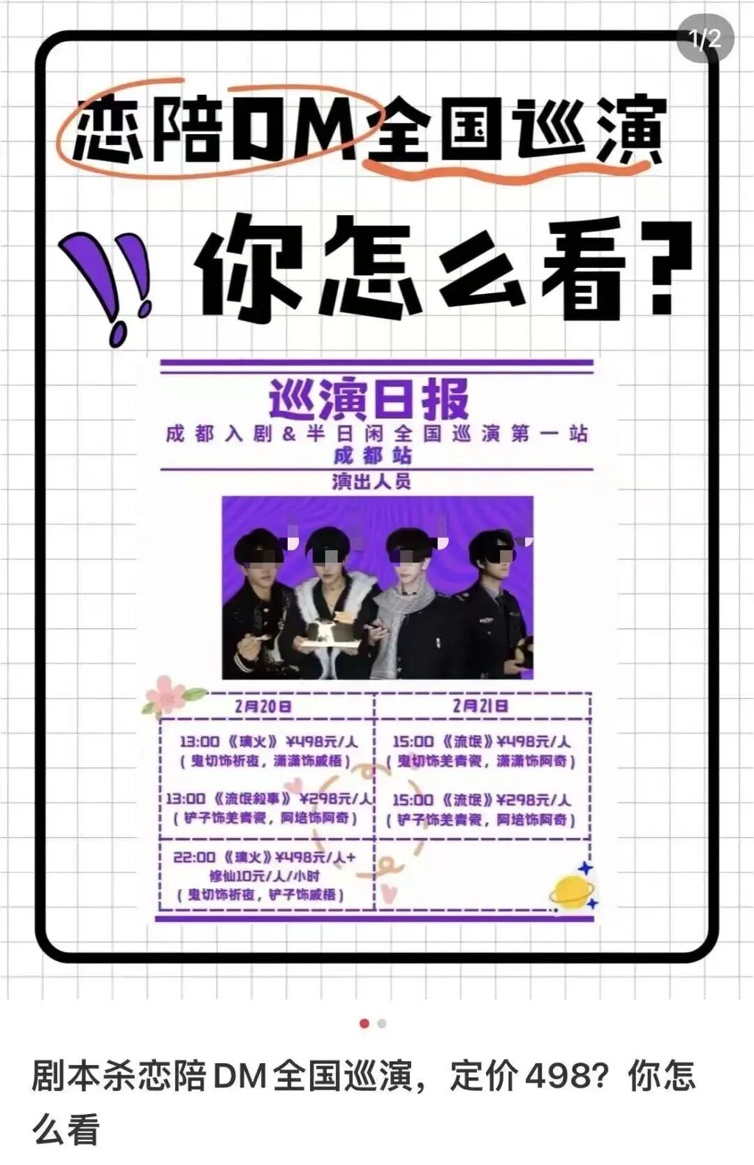 有的剧本杀热门恋陪DM还会设有全国巡演,收费定价498元/人