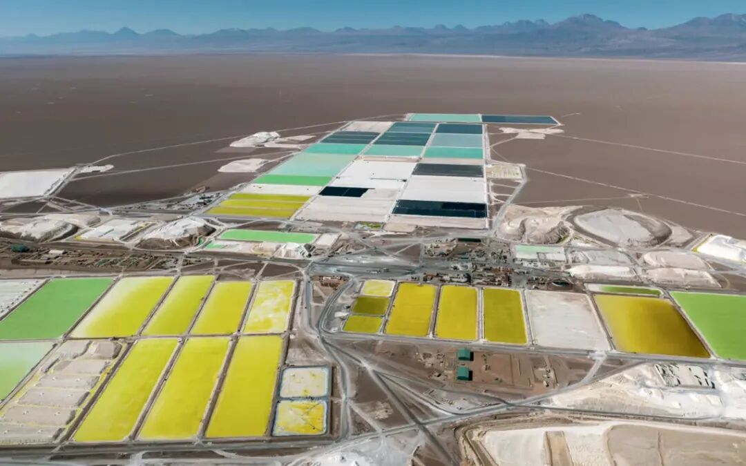 智利阿塔卡马沙漠的锂矿开采区,这里曾占据全球锂产量的近三分之一