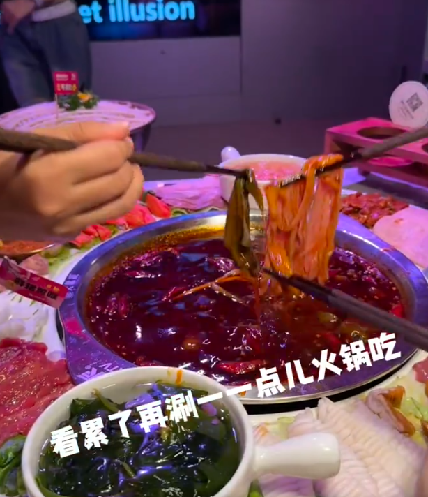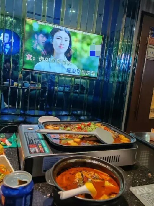 在川渝地区,嵌着电磁炉的圆台是标配,唱到一半,火锅里的菜熟了——放下话筒、拿起筷子是大家都习以为常的场景。