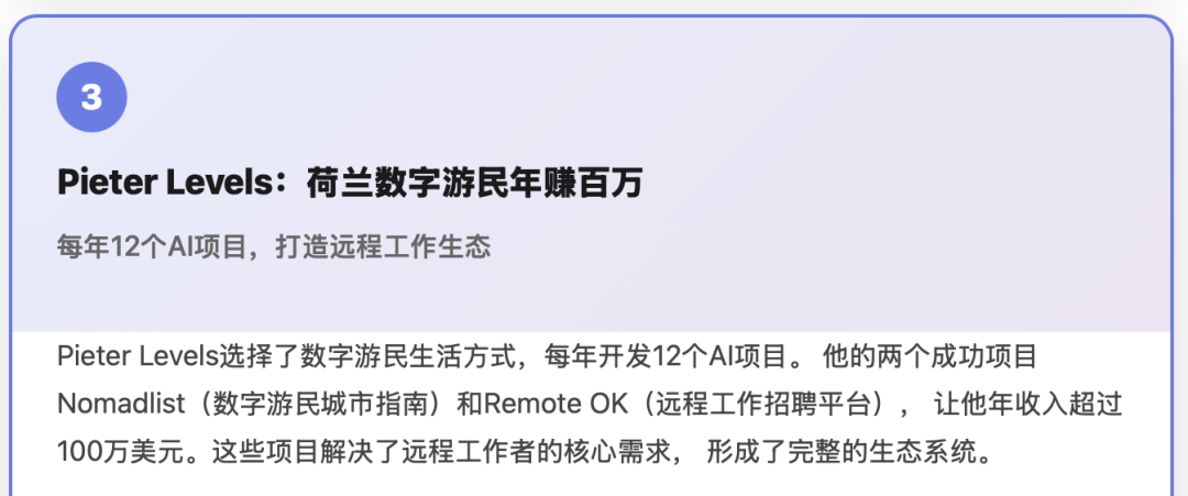 无论是 Pieter Levels 的 Nomad List 与 Remote OK,还是国内一批 SaaS、内容、跨境电商领域的独立创业者,都在向市场证明: