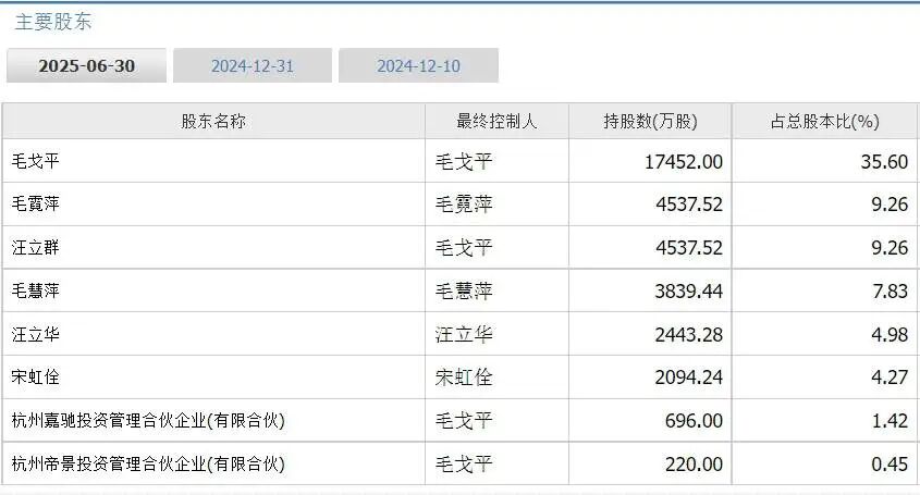 按照持股比例计算,上述毛戈平及其亲属5人持股比例为66.93%。再加上由毛戈平实际控制的杭州嘉驰、杭州帝景,毛戈平家族在上市公司的实控股权比例达到68.8%,超过2/3。