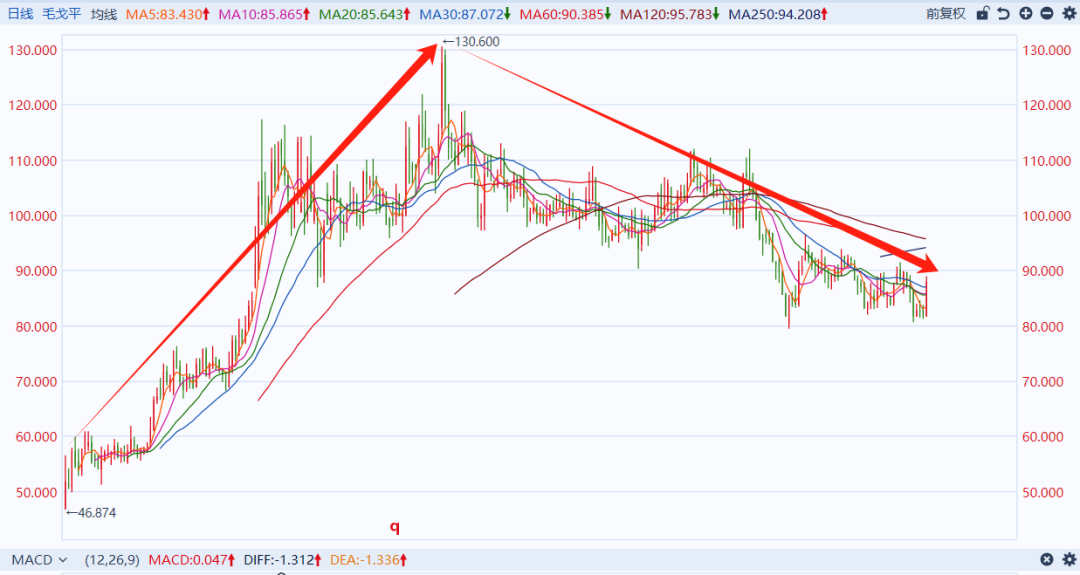 二级市场上,2025年6月,毛戈平股价最高冲至130港元/股,总市值突破624亿港元,一度被投资者称为“美妆茅台”。随后,股价震荡下跌,截至1月6日收盘,毛戈平股价报82港元/股,总市值401.95亿港元,与2025年6月高点相比,市值缩水约223亿港元。