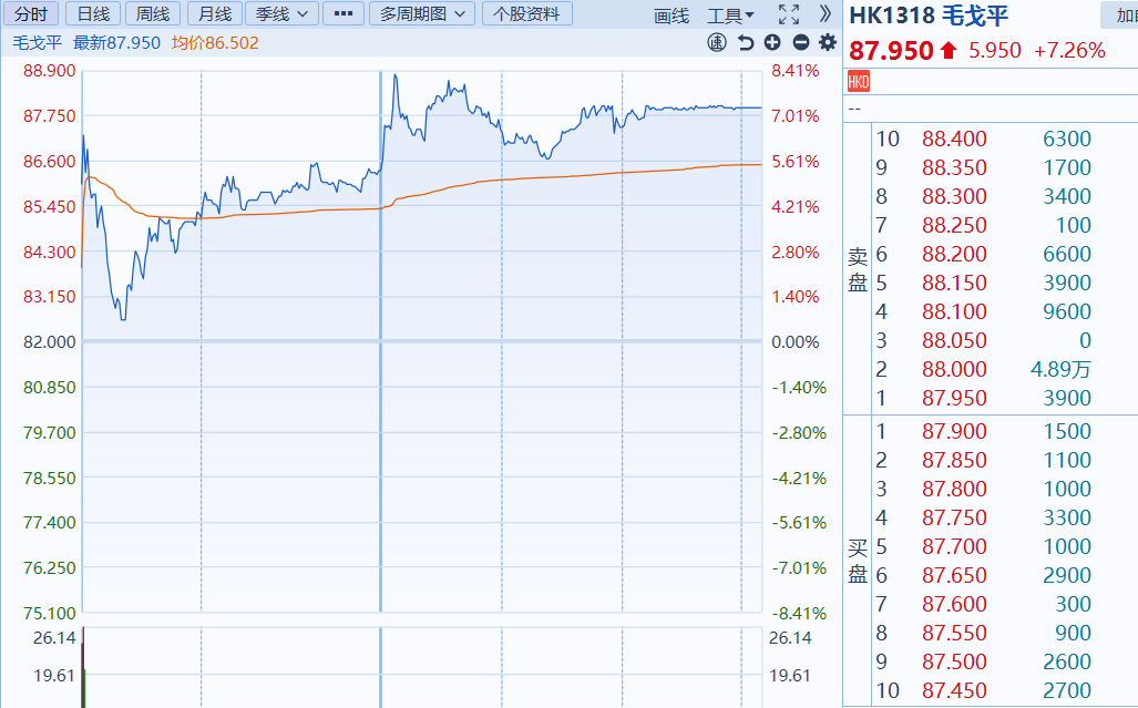 值得注意的是,今天毛戈平股价似乎并未受到减持利空消息的影响,股价反而高开4.88%。截至收盘,股价以上涨7.26%收盘。若按照今天收盘价格计算,上述1720万股市值超15亿港元。而毛戈平及配偶持股比例合计44.86%,今天收盘后市值约193亿港元。
