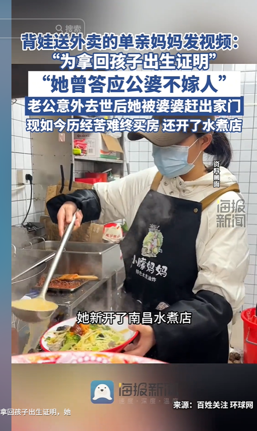 曾经因背着孩子送外卖引发关注的单亲母亲“小朦妈妈”,今年3月也在社交平台晒出房产证,新开了一家水煮店,人生翻开新篇章。