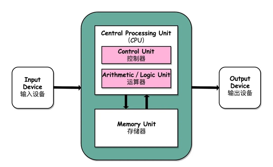 冯·诺依曼将计算机分为五大组成部分:输入设备、存储器、运算器、控制器和输出设备。这一体系结构,至今仍被称为“冯·诺依曼架构”。从ENIAC到当前最先进的计算机,都采用这一架构。