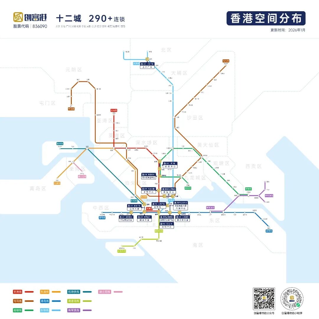 作为深耕共享办公领域17年的头部品牌,创富港已在香港铜锣湾、中环、湾仔等核心商圈布局14家空间。