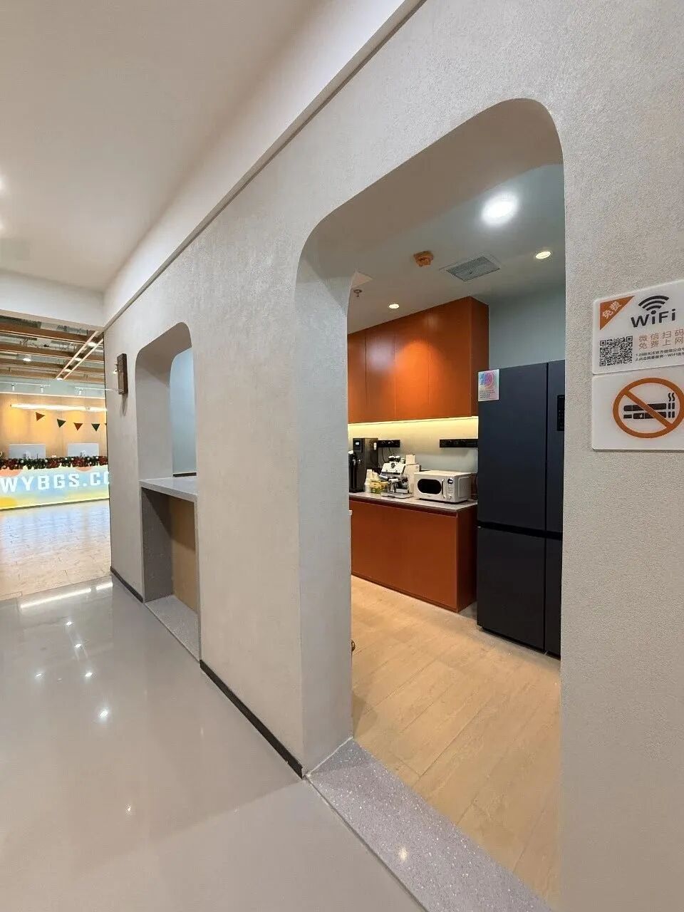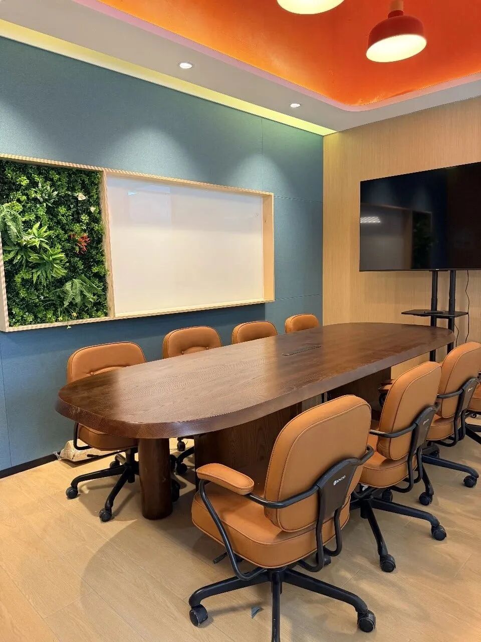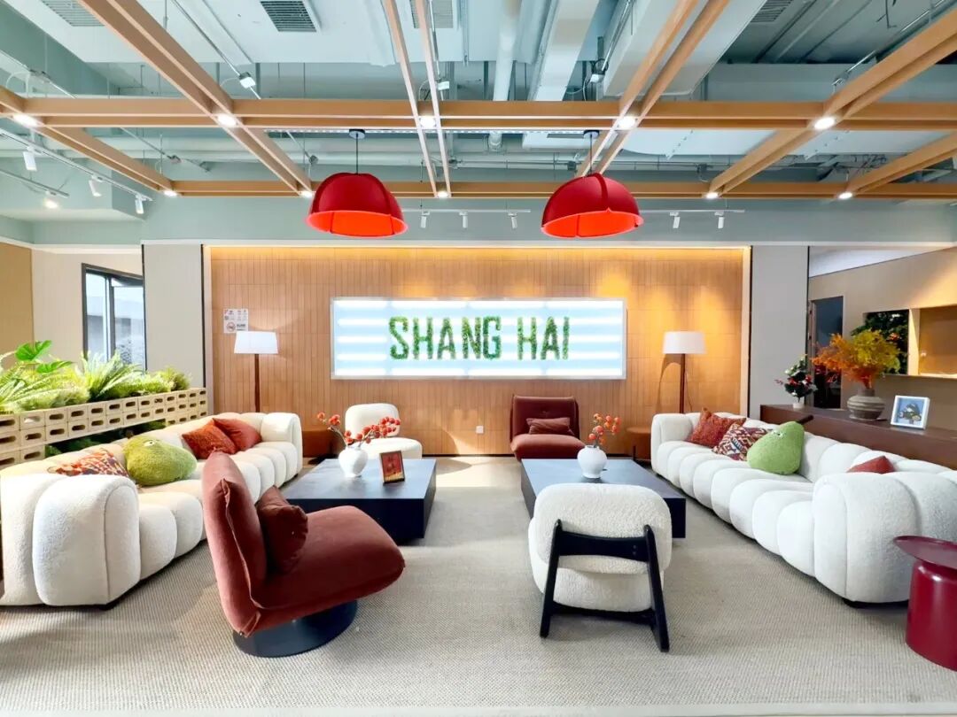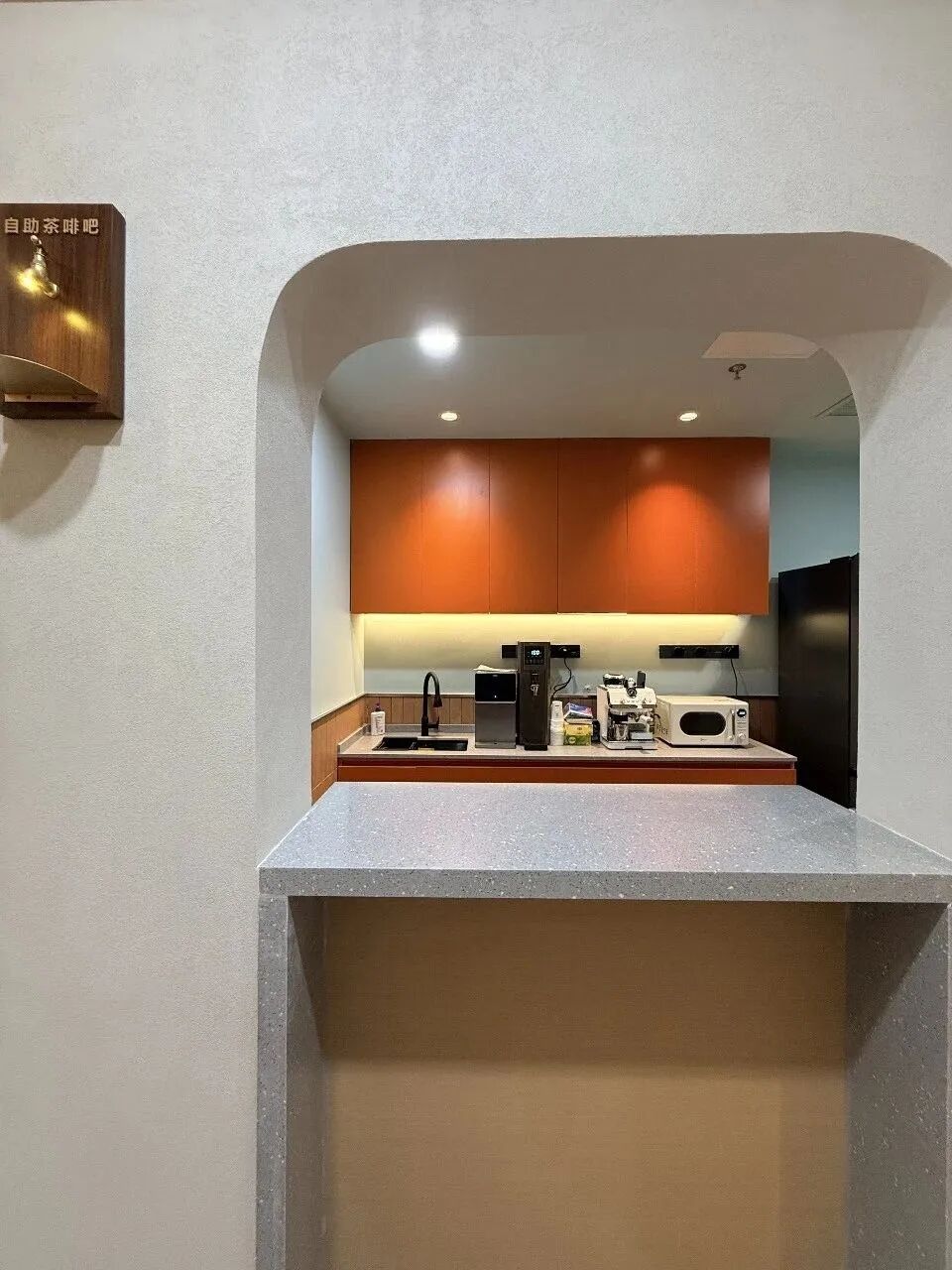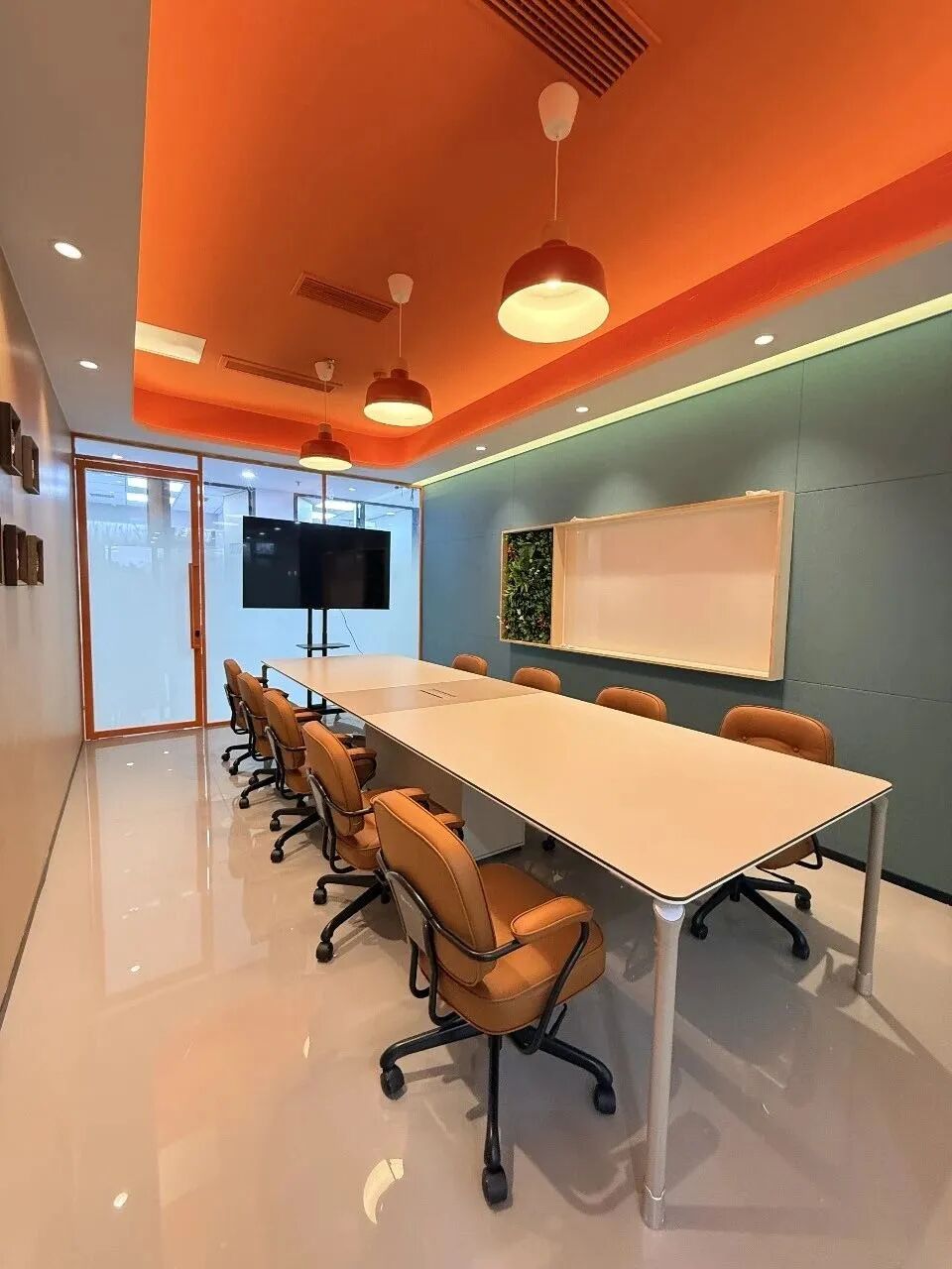 新店最大特色在于花园式办公环境。空间坐落于低密度花园园区内,享有“前园后河”的生态景观,将自然绿意与办公场景有机融合。工作之余,推窗可见绿树流水,在都市核心区构筑了一处有助于舒缓压力、激发创造力的静谧空间。