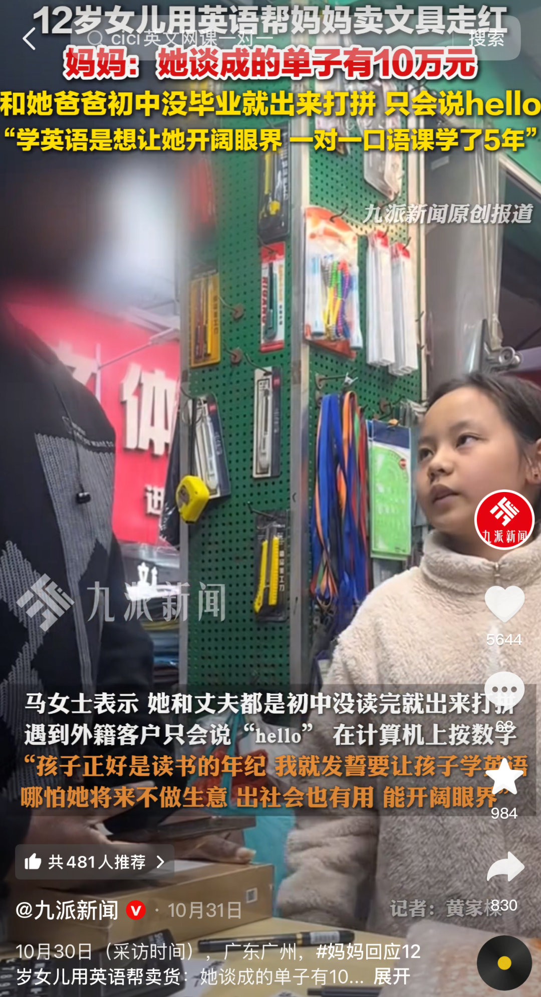就像那个用英语帮妈妈卖货的小女孩,一口流利的英语不仅让外国人惊讶赞叹,也让很多家长羡慕不已,甚至连人民日报这些官媒都点赞转发。