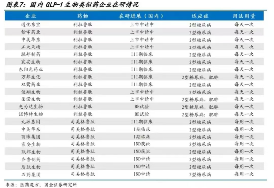 目前,排队等待诺和盈专利到期后上市的国产司美格鲁肽生物类似药就有7款之多,九源基因、丽珠医药等仿制药基本能无缝衔接粉墨登场,竞争白热化程度可想而知。